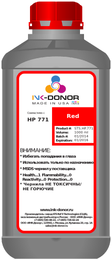 Пигментные чернила INK-DONOR (USA)™ 771 класса Ultra Premium производства США, — это единственные чернила на российском рынке, которые идентичны оригинальным по качеству печати.